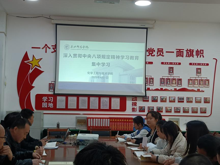 会上,认真学习《习近平关于加强党的作风建设论述摘编》第一、第二专题和《天水师范学院深入贯彻中央八项规定精神学习教育工作方案》,3名党支部书记紧扣学习教育主题做了交流发言。