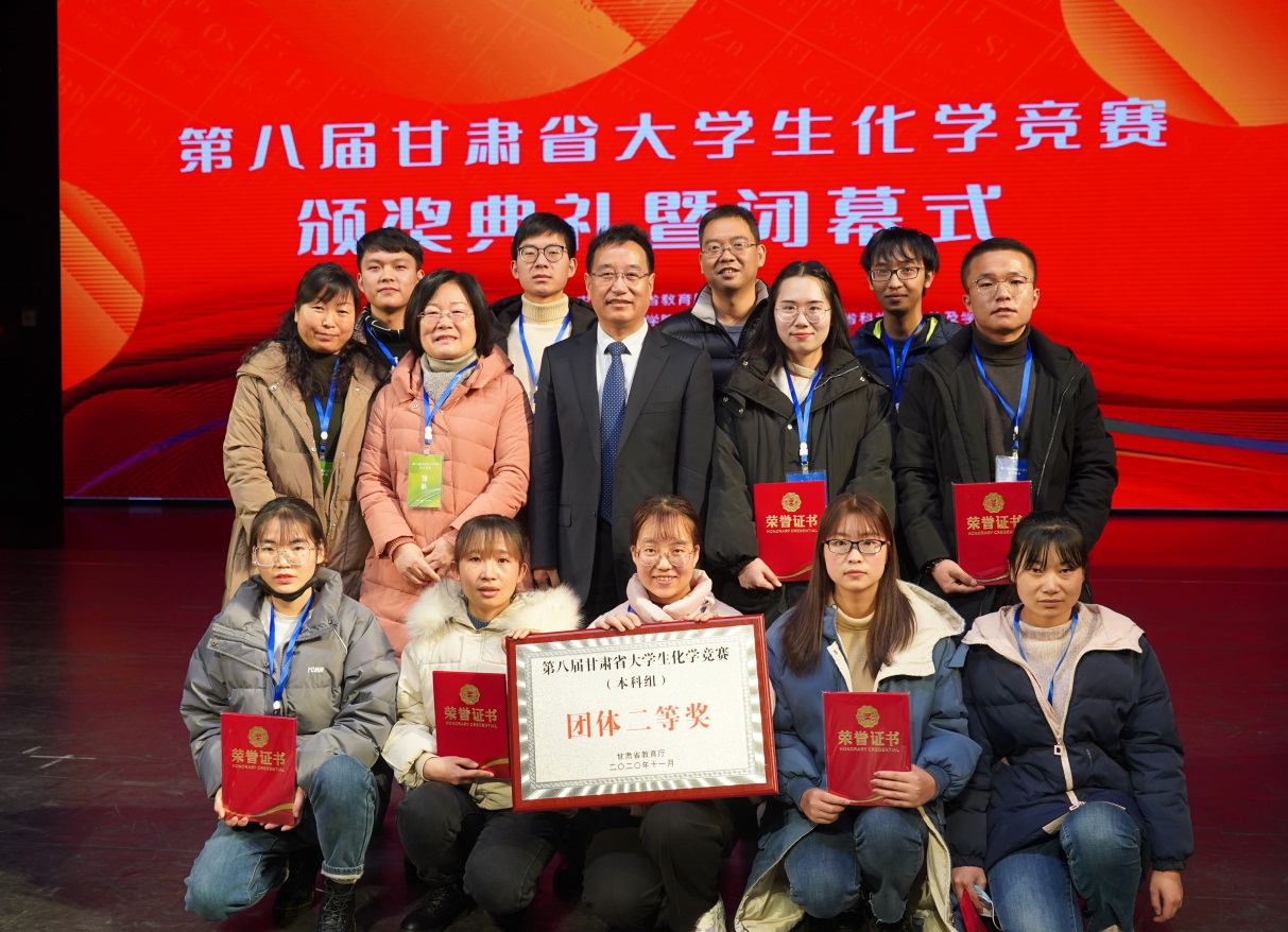 28日上午,第八届甘肃省大学生化学竞赛开幕式在河西讲堂举行。开幕式结束后,参赛学生进行了理论知识竞赛和实验技能竞赛。经过紧张激烈的角逐,bat365代表队在比赛中发挥出色,获得本科组团体二等奖,黄祺雯、石福茸同学获得本科组一等奖,丁东林同学获得二等奖,杨帅、郑磊、高夏红、曹翻平、杨嘉诚、陈霞、刘继荣同学获得三等奖,参赛学生全部获奖。
