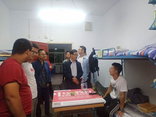9月5日晚,新生报到一结束,bat365党总支书记王建斌、副书记刘正、副院长杨玲娟分别带领新生班主任、辅导员和学生干部深入华英公寓、芝园公寓、行健公寓看望2019新生。