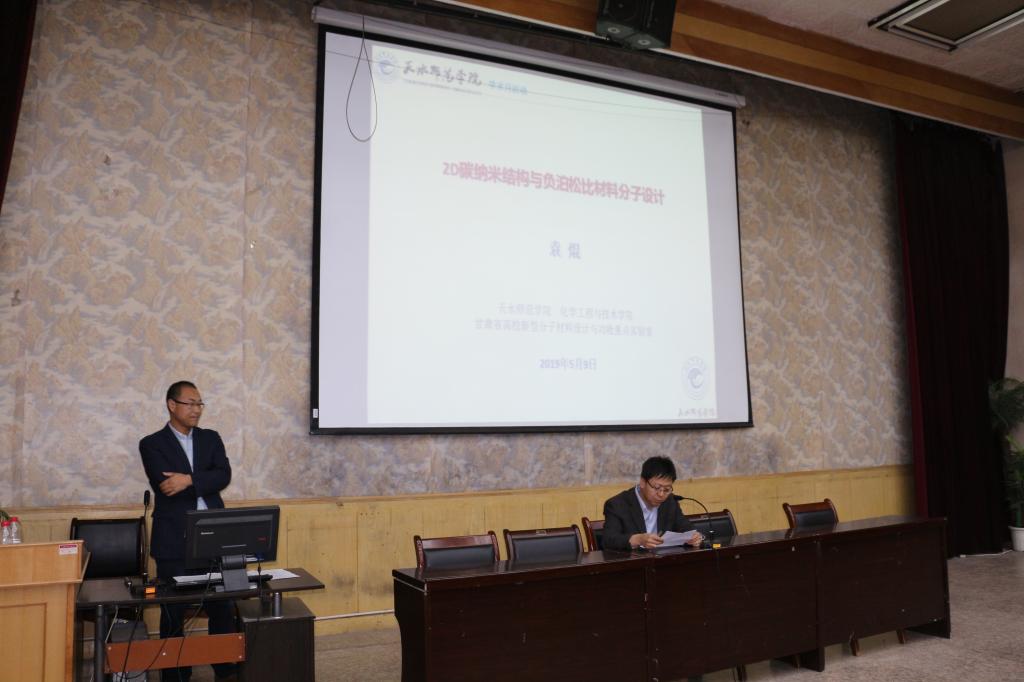 5月9日下午,由科研管理处主办化工学院承办的学术月活动之校内教师讲坛在1号报告厅顺利开讲,bat365青年博士袁焜作了题为碳纳米结构与负泊松比材料分子设计报告。