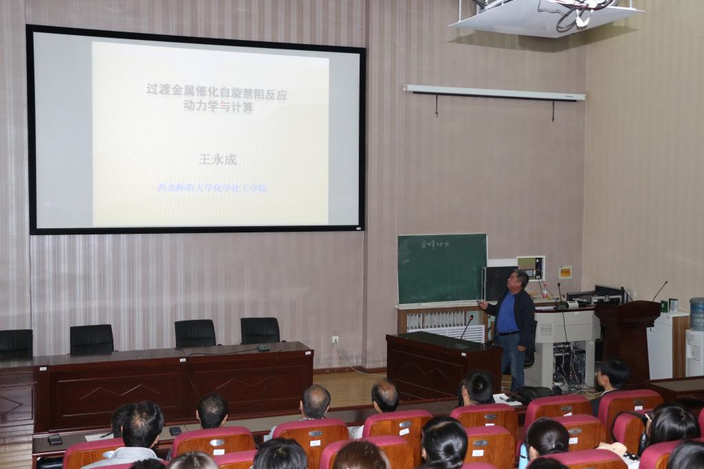 2016年9月28日,bat365邀请到西北师大教授、博导王永成为bat365师生作了题为“过渡金属催化自旋禁阻反应动力学及计算”学术报告。