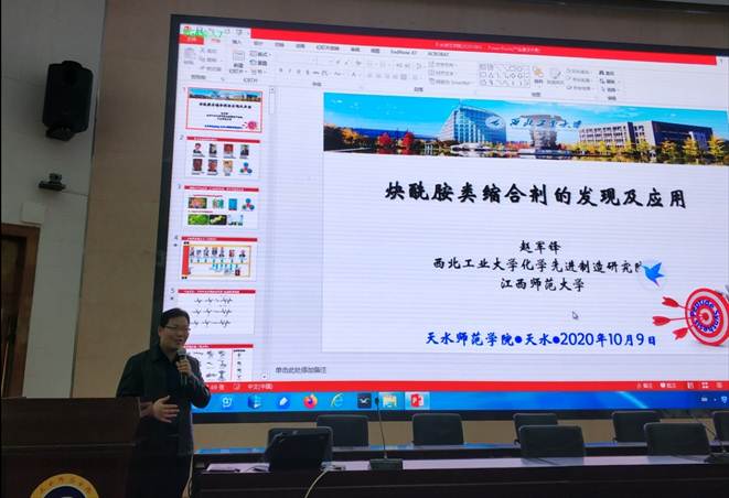10月9日下午学院邀请西北工业大学博士生导师赵军峰教授、西北师范大学博士生导师薛中华教授为bat365师生作了精彩的学术报告。学院相关负责人、研究生导师、全体研究生及部分本科生近300人聆听报告。