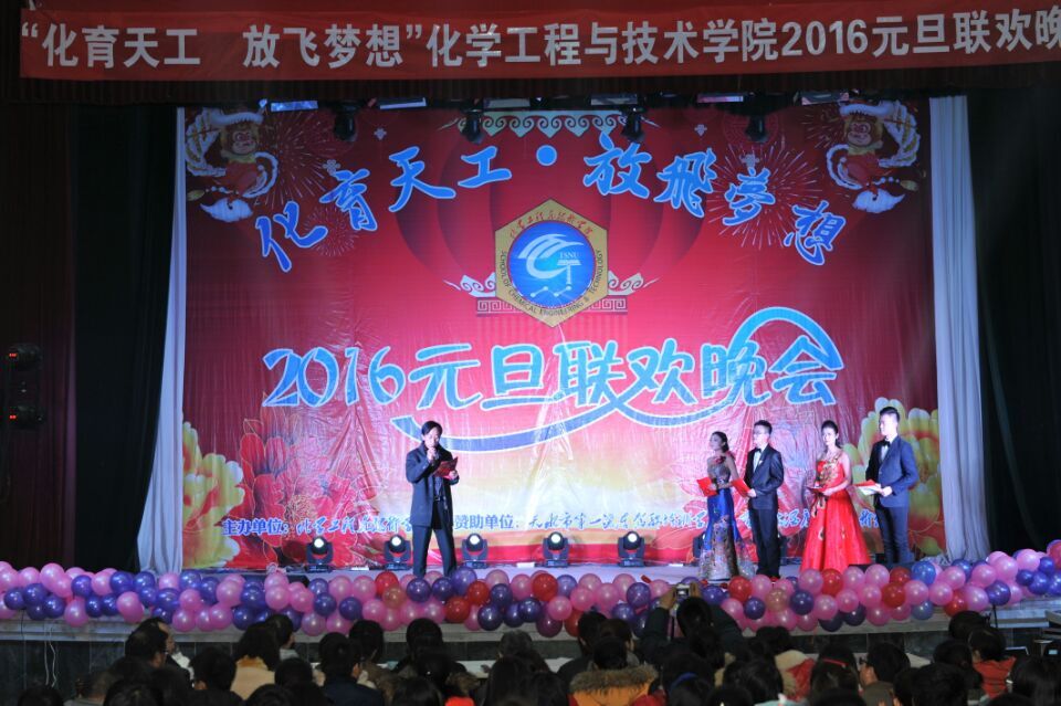 12月24日晚7:30,bat365在大礼堂隆重举行了“化育天工,放飞梦想”2016元旦联欢晚会。出席本次晚会的有:天水金龙大酒店董事长、中国美协会员、甘肃国画院副院长赵万顺先生,天水市第一汽车驾驶培训学校副校长王成先生,bat365党政领导及化工学院全体师生。