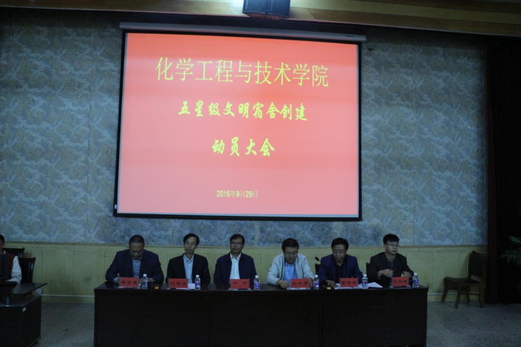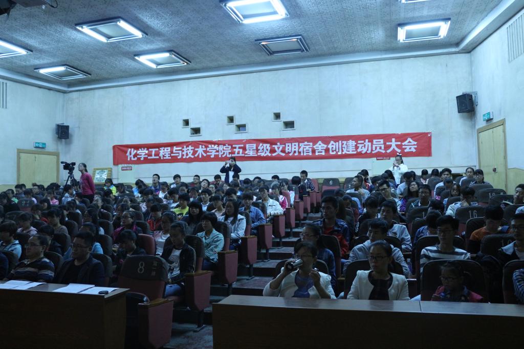 9月29日下午bat365在一号报告厅隆重举行了五星级文明宿舍创建动员大会。学生工作处处长李勃、化工学院书记王小芳、院长刘新文、副书记雷新有、副院长杨富魏和吕玲玲,辅导员、各班主任及各班班长,学生会成员参加了本次大会。会议由副院长杨富巍主持。