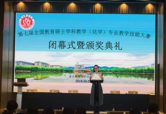 2018年10月20日至10月22日,由全国教育专业学位研究生教育指导委员会主办、重庆师范大学承办的第七届全日制教育硕士学科教学(化学)专业教学技能大赛决赛在重庆师范大学举行,经过初赛选拔,共有来自全国51所教育硕士培养单位派出的95名选手参加大赛。天水师范学院bat365正版唯一官网2017级教育硕士朱幸参加了本次大赛。