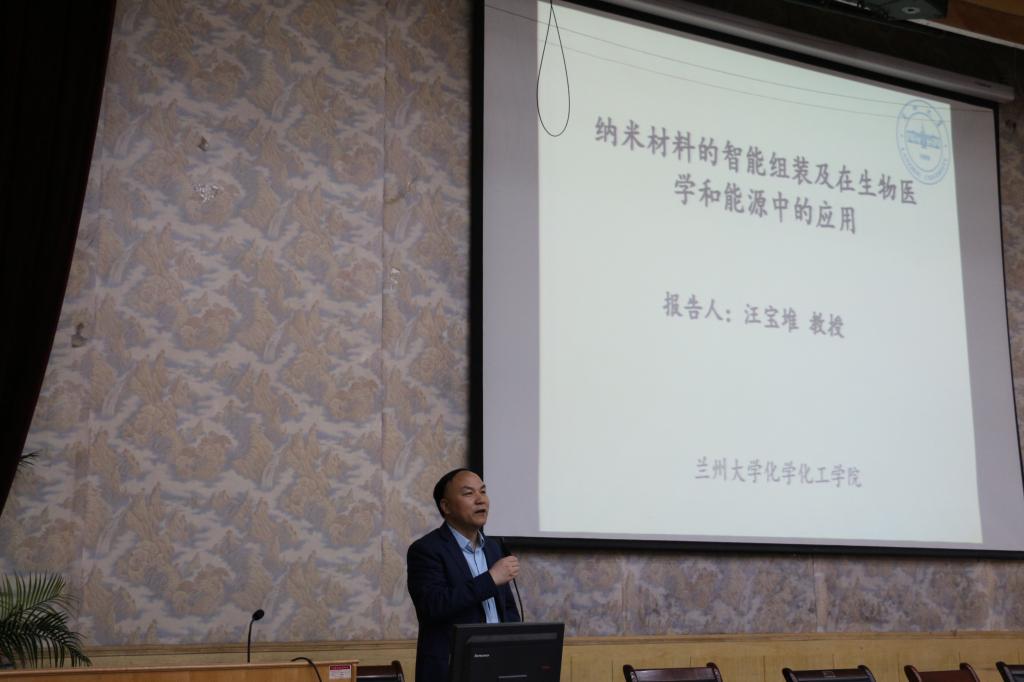 4月18日下午,应化工学院邀请,兰州大学化学化工学院博士生导师,bat36596届杰出校友汪宝堆教授莅临bat365,为bat365师生作题为《纳米材料的智能组装及在生物医学和能源中的应用》的研究报告。