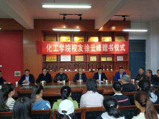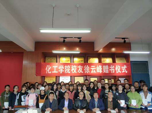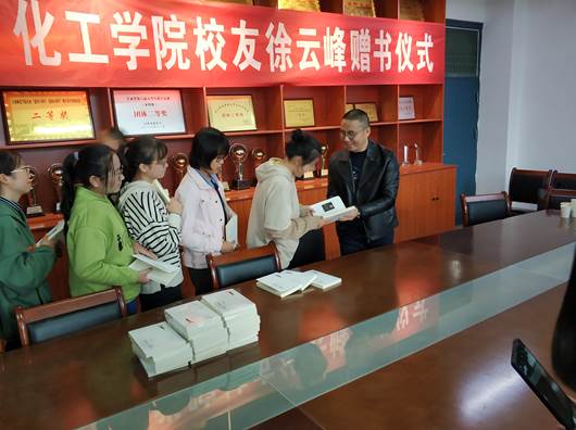 徐云峰向化工学院师生和学校图书馆捐赠自己近两年出版的散文随笔集《云在天上飞》和《心路一光年》共1000余册。