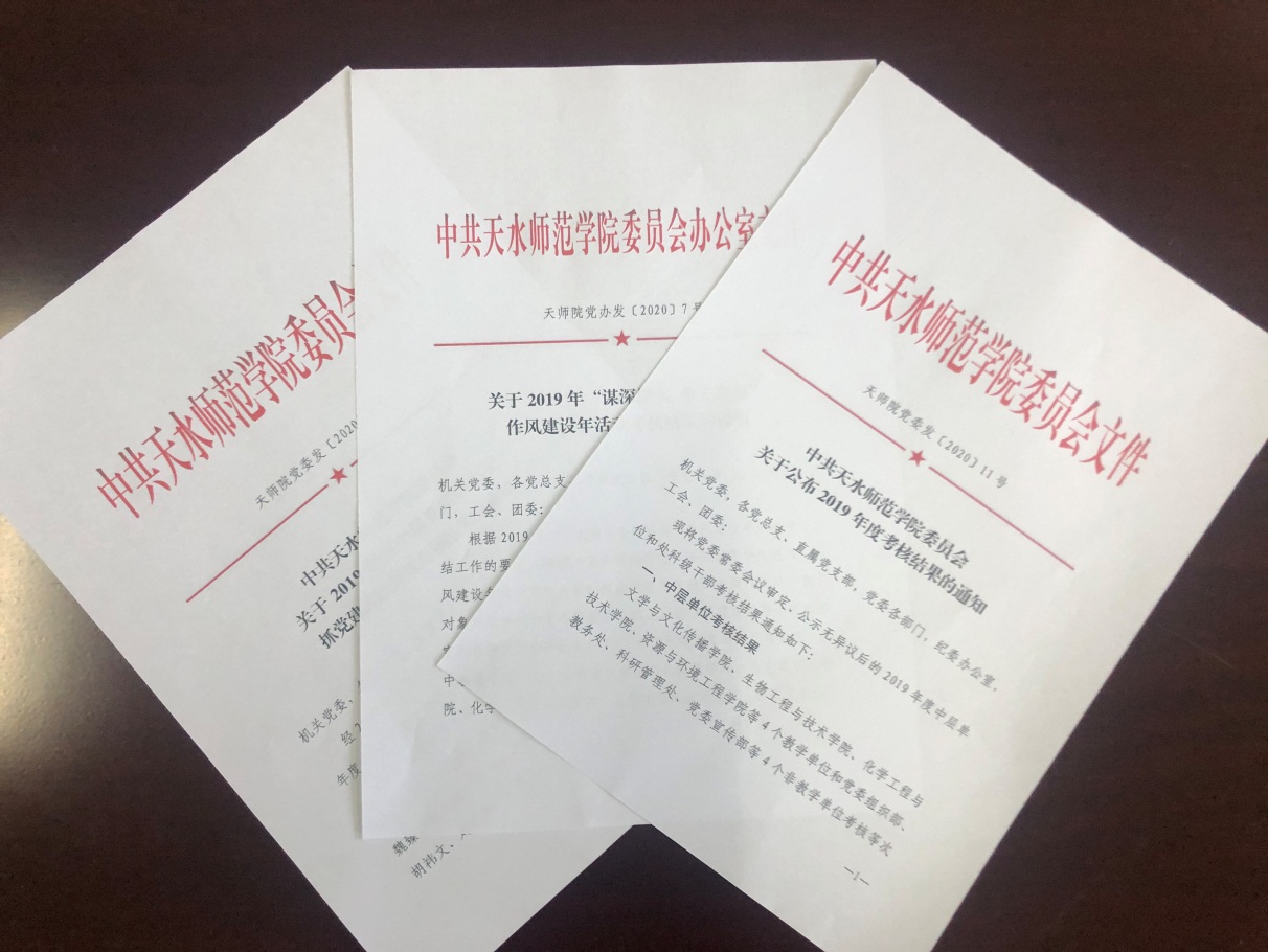 三是严格贯彻落实党组织领导和运行机制,健全并落实党总支会议制度、“三会一课”制度等,大力推进支部建设标准化工作,教工支部被评为学校标杆支部和天水市党建标准化示范点,推荐为全省高校党建标准化先进党支部和样板党支部。