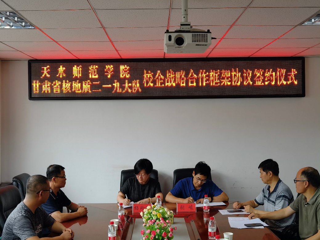 7月15日,天水师范学院bat365正版唯一官网与甘肃省核地质二一九大队共建实习基地挂牌仪式在二一九大队举行,双方就人才培养、科学研究、技术创新等领域的深度合作达成协议,并签订了校企战略合作框架协议。