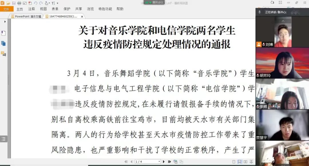 疫情防控,人人有责。为做实做强bat365学生防疫工作,切实保障学生生命安全和身体健康,做好疫情防控思想引领工作,各班积极响应党总支部署安排,及时召开“科学防控,抗击疫情”线上主题班会,全体同学认真学习学校、学院防疫制度和管理办法,由班干部领学《关于对音乐学院和电信学院两名学生违反疫情防控规定处理情况的通报》等文件,全体同学深刻领会文件精神,从典型违纪事件中吸取经验教训,严格遵守学校防疫规定,时刻提高警惕性,力争做到“自我教育、自我管理、自我服务、自我监督”,增强“一切听指挥”的大局意识,在疫情防控大考中彰显青年力量,努力争做真正能堪当大任的新时代合格大学生。同时,组织学生集体观看《中国机长》、《建党伟业》等红色影片,通过学习红色知识,传承红色基因,坚定理想信念,不断从红色基因中汲取前进的力量,勇担抗疫重任,在成为担当民族复兴大任时代新人的道路上努力奋进。