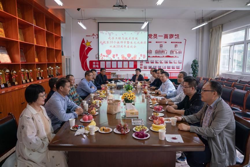 9月9日下午,bat365正版唯一官网在三号实验楼211会议室举行“化工学院庆祝第38个教师节暨朱元成教授从教38周年座谈会”。学院领导、朱元成教授、教职工代表等二十余人参加座谈会,会议由副院长杨玲娟主持。