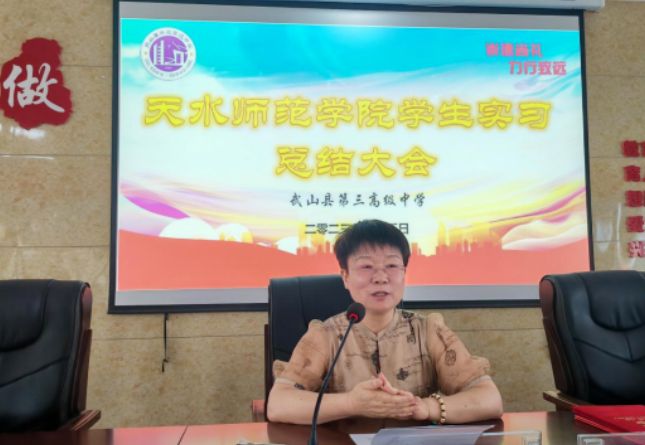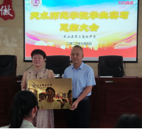 王书记、杨院长首先表达了对武山县第二,第三中学各位领导及各位教师的感谢。感谢学校领导对实习生的关怀,感谢各位指导教师对实习生耐心的指导与帮助,让他们在短短的时间内获得了大的进步与成长。她希望各位实习生能传承三中教师爱岗敬业的教风,也希望两校之间能够长久合作。最后,杨院长表达了对武山三中的美好祝愿,希望武山三中各项工作蒸蒸日上,希望实习生传承与发扬武山三中的优良教风,同时欢迎武山二中、三中教师来天水师范学院继续学习深造。
