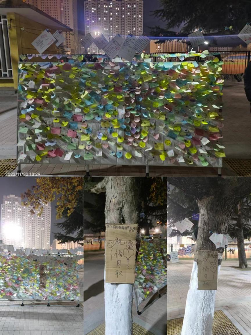 “我是向你传递祝福的手写贺卡,以最真挚的寄语相赠。我是寒夜为你递上暖贴的双手,以一点温暖点燃你的梦想。愿你在广袤的知识沃土间俯首躬耕,愿你如朝气蓬勃的金葵般向阳而生,愿你有璀璨的星光做照亮前路的灯,愿你永怀热血赤诚不断朝高处攀登,愿你在追逐梦想的道路上持之以恒。惟愿各位考研学子青云万里,终将上岸。”一张张带着美好祝愿的明信片、承载着真挚寄语的便利贴在冬日的校园里随风摇曳,希望能在这个寒冷的冬日给广大考研学子送去一份份温暖和鼓励。