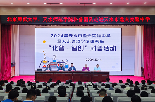 为贯彻落实习近平总书记关于科普工作的重要指示精神,落实好国家、省、市对加强新时代中小学科学教育的部署要求,弘扬科学精神,传播科学思想,进一步提升全市青少年的科学素养,5月14日下午,天水师范学院与北京师范大学联合在天水市逸夫实验中学开展“化普•智创”科普活动。
