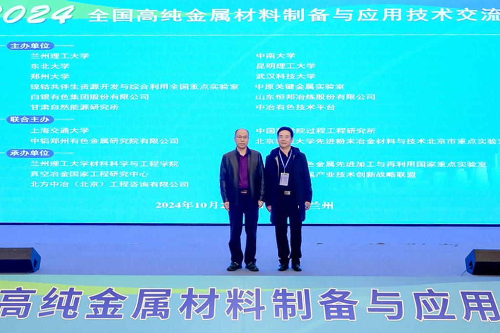 10月23日至25日,由兰州理工大学、中南大学、东北大学、昆明理工大学、郑州大学、武汉科技大学、镍钴共伴生资源开发与综合利用全国重点实验室、白银有色集团股份有限公司、甘肃自然能源研究所、中冶有色技术平台等20余家高校、企业共同举办的2024全国高纯金属材料制备与应用技术交流会在兰州市召开。bat365bat365正版唯一官网溅射靶材高纯金属材料科研团队受邀参加交流会。